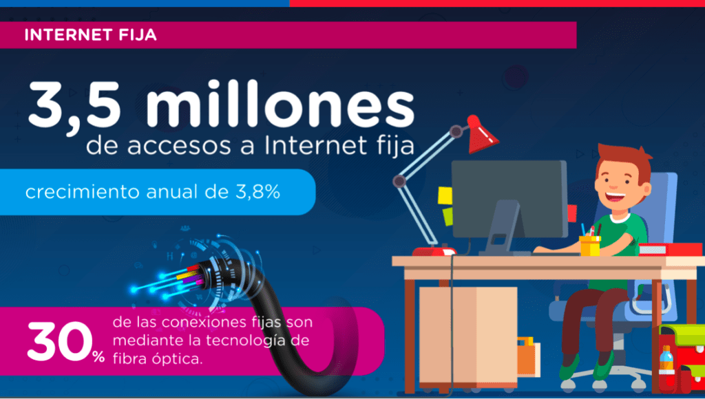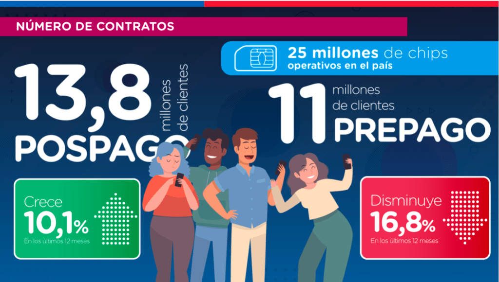 En cuanto al internet móvil, en el país existen 19 millones de conexiones a redes 3G y 4G. Esta última, consolida su penetración con 16,6 millones de enlaces del total anteriormente señalado. Cifras que permiten alcanzar una penetración de 97,8 accesos por cada 100 habitantes.