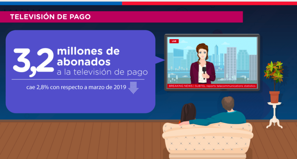 De esta forma, la cantidad de contratos disminuye un 2,8% en comparación al mismo periodo del 2019, llegando así a los 3,2 millones de clientes de televisión de pago. Cifras que permiten llegar a las 16,6 suscripciones por cada 100 habitantes, representado un 57% del total de los hogares en Chile.
