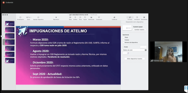 Luego de la intervención de Letelier, fue el turno de la subsecretaria, Pamela Gidi, de presentar la postura del Ejecutivo. Durante su presentación, Gidi, mostró los diferentes hitos e impugnaciones que ha tenido la ley de parte de las empresas que deben aplicarls, todas ellas agrupadas en Atelmo.