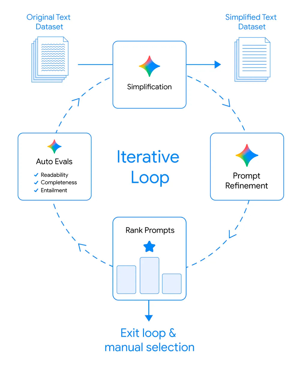 El departamento de trabajo se enfocó en la fidelidad. La herramienta debía reescribir ideas complejas, sin perder el significado original y sin omitir los detalles importantes. Un sistema de IA más avanzado actuó como el maestro. Un algoritmo de Gemini intentaba simplificar un texto. Un segundo programa, el evaluador, calificaba qué tan bien mantenía el significado original. La crítica se enviaba al primero y la usaba para mejorar.