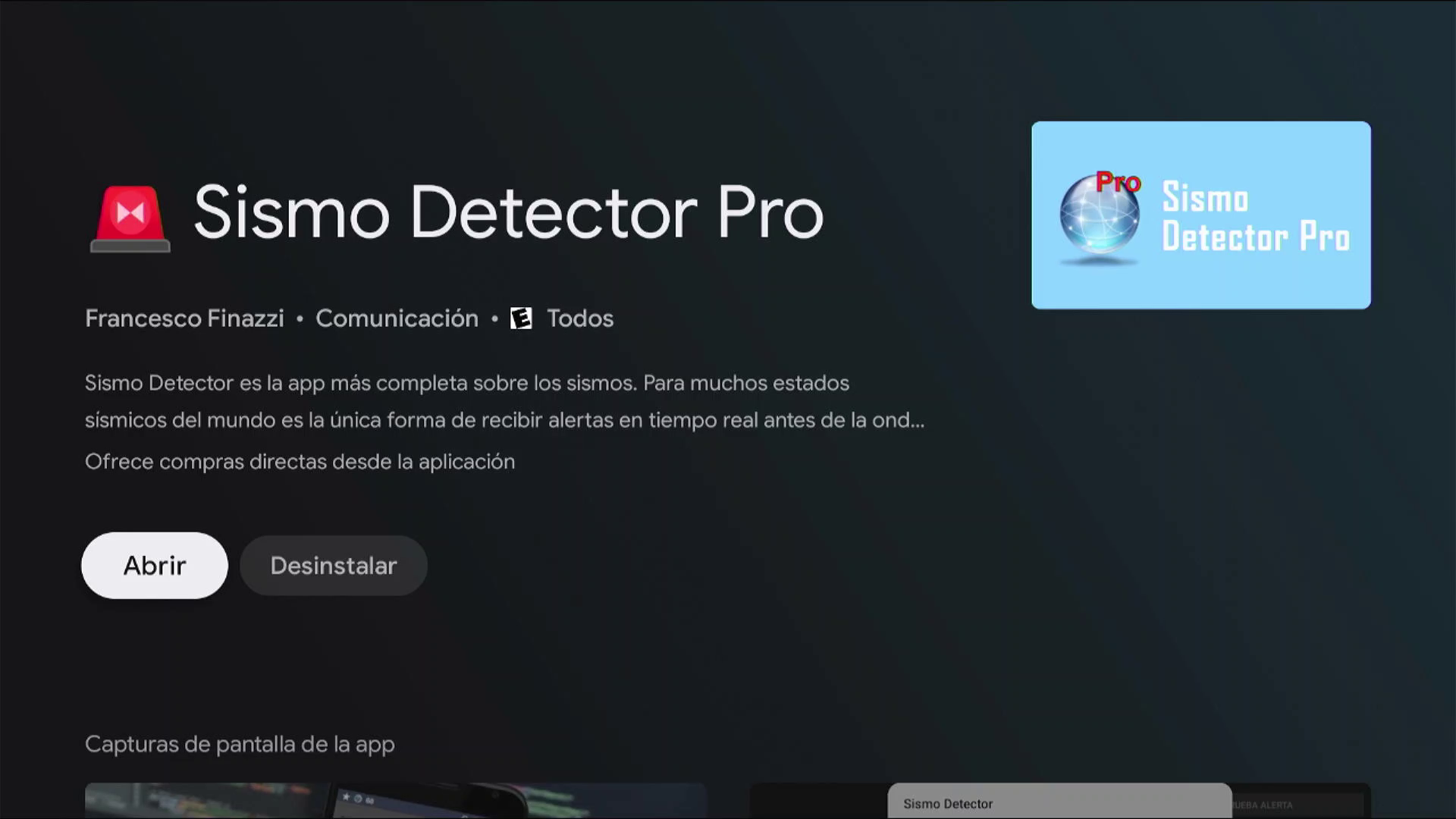 Solo tienes que ir a Google Play desde tu dispositivo con Android TV, buscar “Sismo Detector” y descargar la versión normal o Pro, dependiendo cual tengas en tu smartphone.