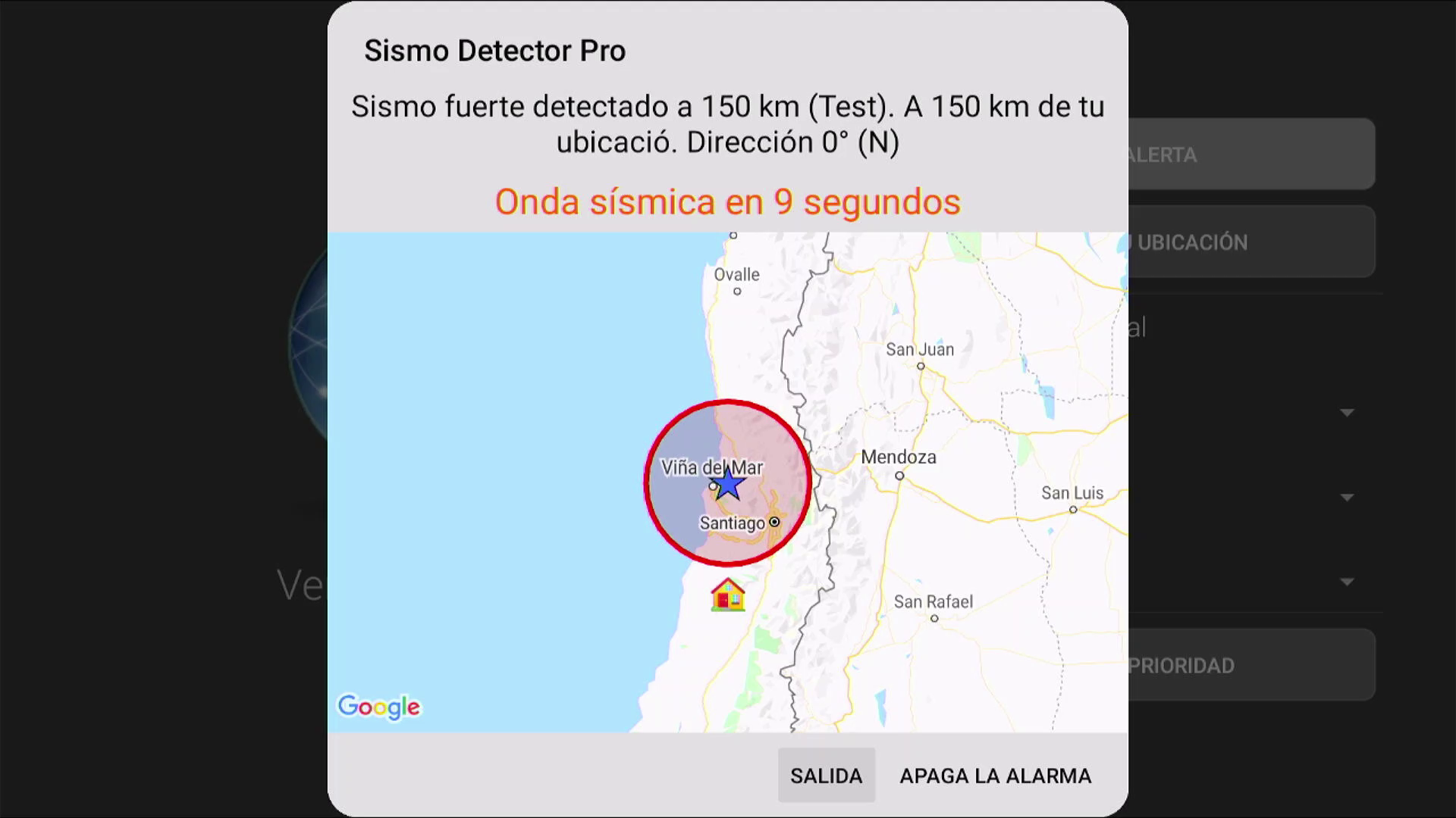 Finalmente, solo queda presionar el botón «Prueba alerta» para ver si aparece la alerta sísmica en pantalla. Si todo quedó bien, debería aparecer lo siguiente: