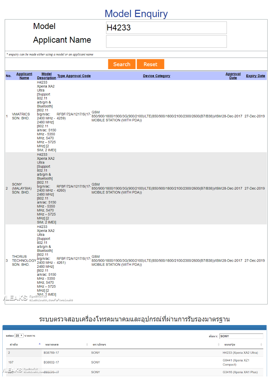 Dicho de otra forma, ahora resulta que este mismo aparato vuelve a ser protagonista de una nueva filtración en la cual se desvela que se trataría del Xperia XA2 Ultra, todo menester a información proveniente de los sitios web de las agencias reguladoras en Tailandia y Malasia.
