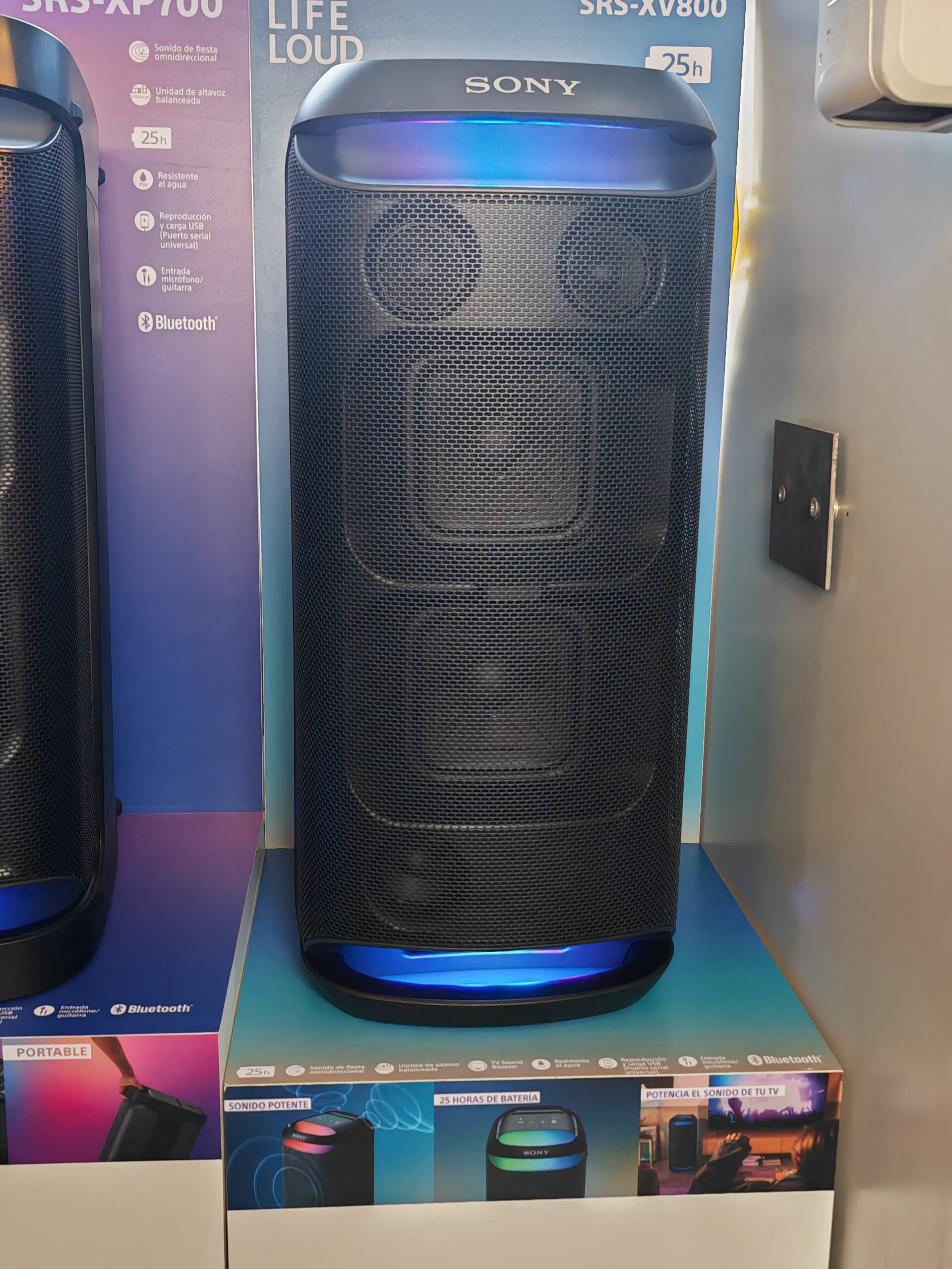 Ideal para estas fiestas de fin de año y obviamente para el verano, el Sony SRS-XV800 tiene todo lo necesario para que nuestras fiestas sean las mejores, con un sonido omnidireccional que inunda cualquier lugar de sonido energético y claro, gracias a sus tres tweeters frontales, dos tweeters traseros y dos potentes woofers.