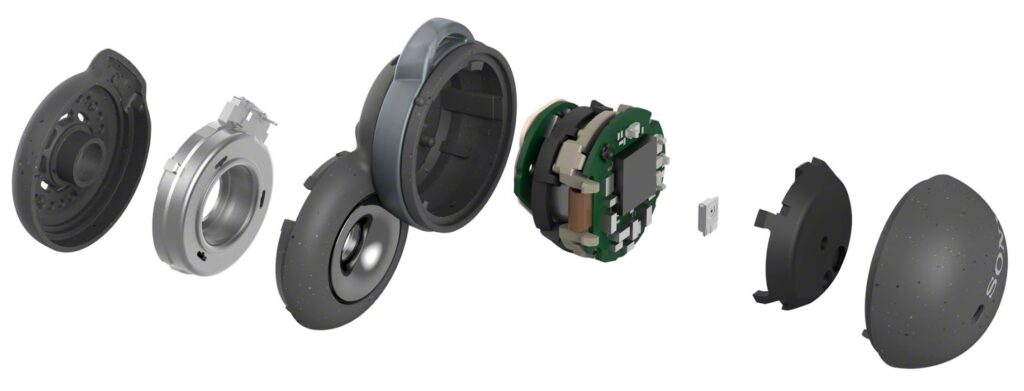 Los Sony LinkBuds cuentan con un agujero para que el sonido exterior pase de manera libre y natural hacia tus oídos, mientras estás escuchando tu música favorita a la vez, ya que la salida del audio sale por orificios que están alrededor de este agujero, tal cual como lo ves en la imagen: