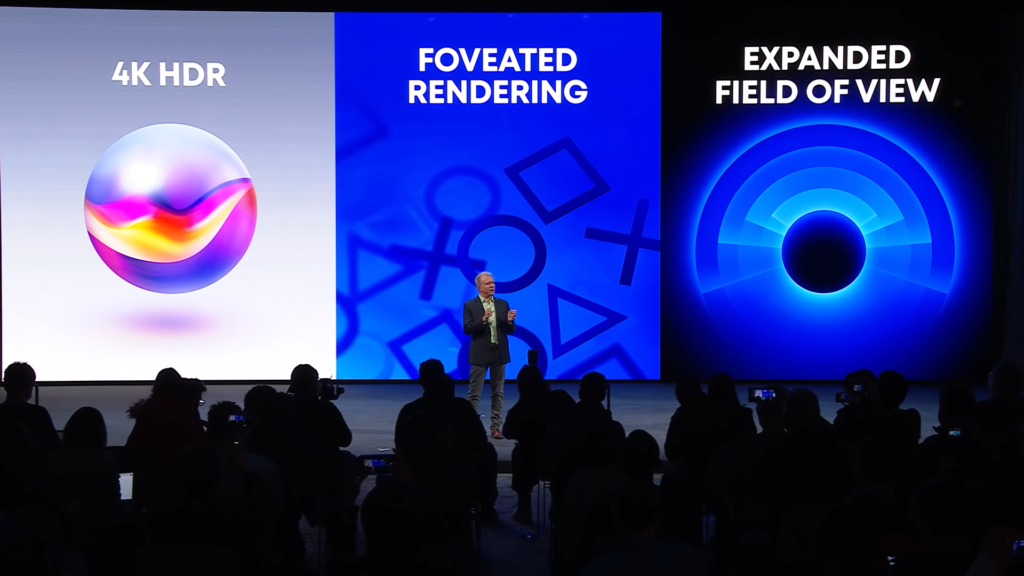 En cuanto a especificaciones, PlayStation VR2 integrará un panel OLED 4K HDR. La resolución por ojo se quedará en unos nada despreciables 2000×2040 píxeles, bajo una frecuencia de actualización que variará entre 90Hz y 120Hz. Lamentablemente, aún no tenemos una imagen del visor en si.