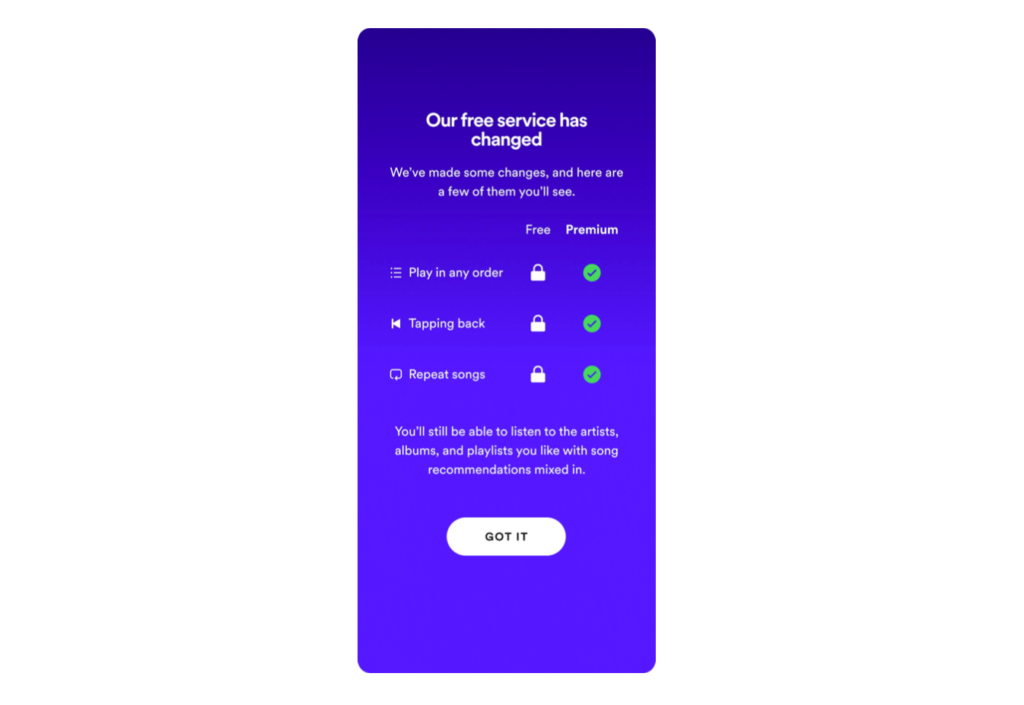 Esto significa que la opción aleatoria tradicional ya no estará disponible para los usuarios gratuitos. Se cree que todo esté hecho con la intención de que los usuarios opten por una suscripción mensual de pago por sobre la gratuita.