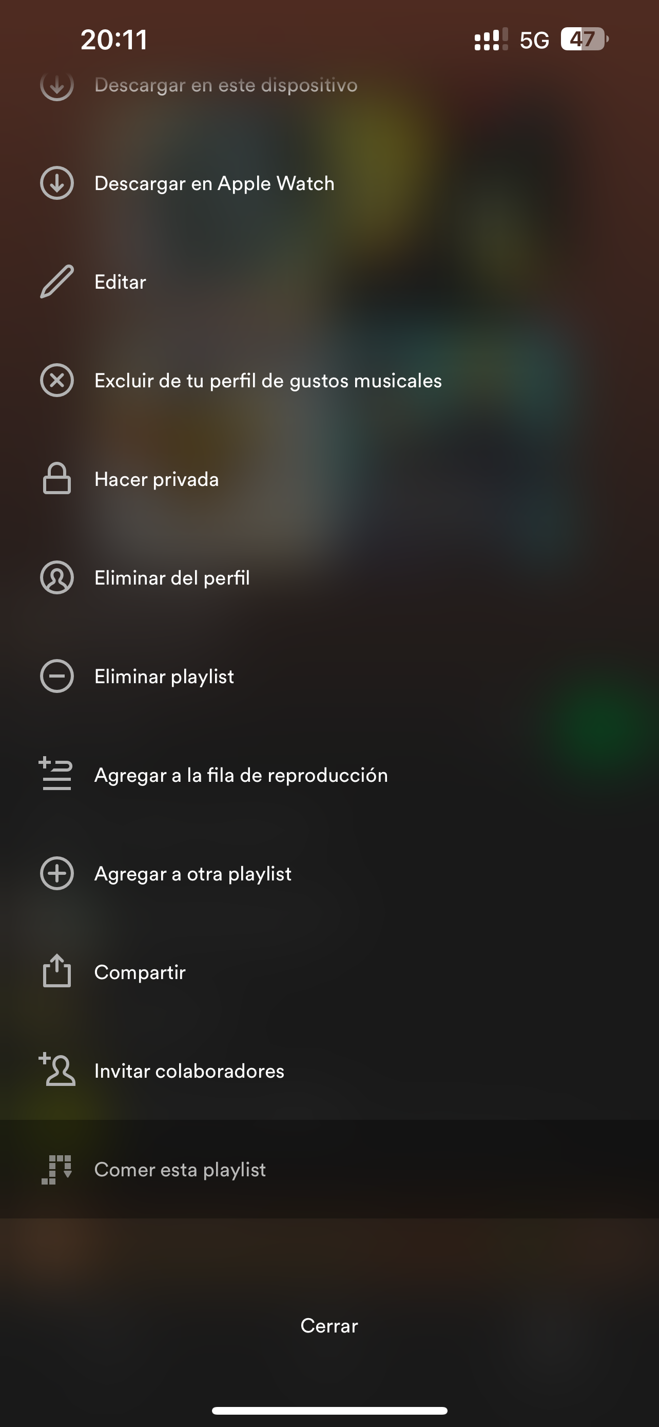 En la nueva pantalla, deslízate hasta la última opción que lleva como nombre “Comer esta playlist”.