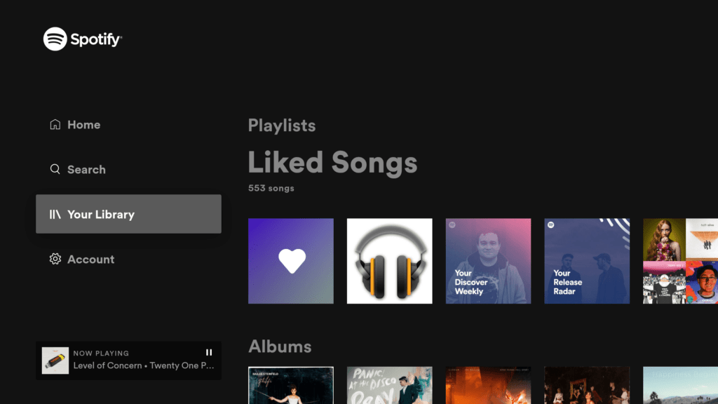 Este rediseño incluye imágenes de fondo basadas en las bandas y álbumes que escuchas, así como el uso de una nueva barra lateral para la navegación. Aquella barra lateral tiene pestañas para Inicio, Búsqueda, Tu Biblioteca y Cuenta, algo que te resultará familiar si usas la aplicación en tu smartphone.