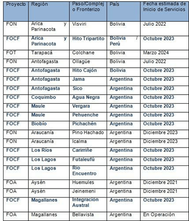 Por otro lado, estos puntos de conexión se suman a los puentes que ya existen con los demás países, dotando de mayor versatilidad a la red chilena. Así, Chile tendrá 24 puntos de conexión con Argentina, 6 con Bolivia y dos con Perú. Con Brasil, la conexión se realiza a través de Bolivia y Argentina, lo que equivale a 8 rutas de conexión con dicho país.