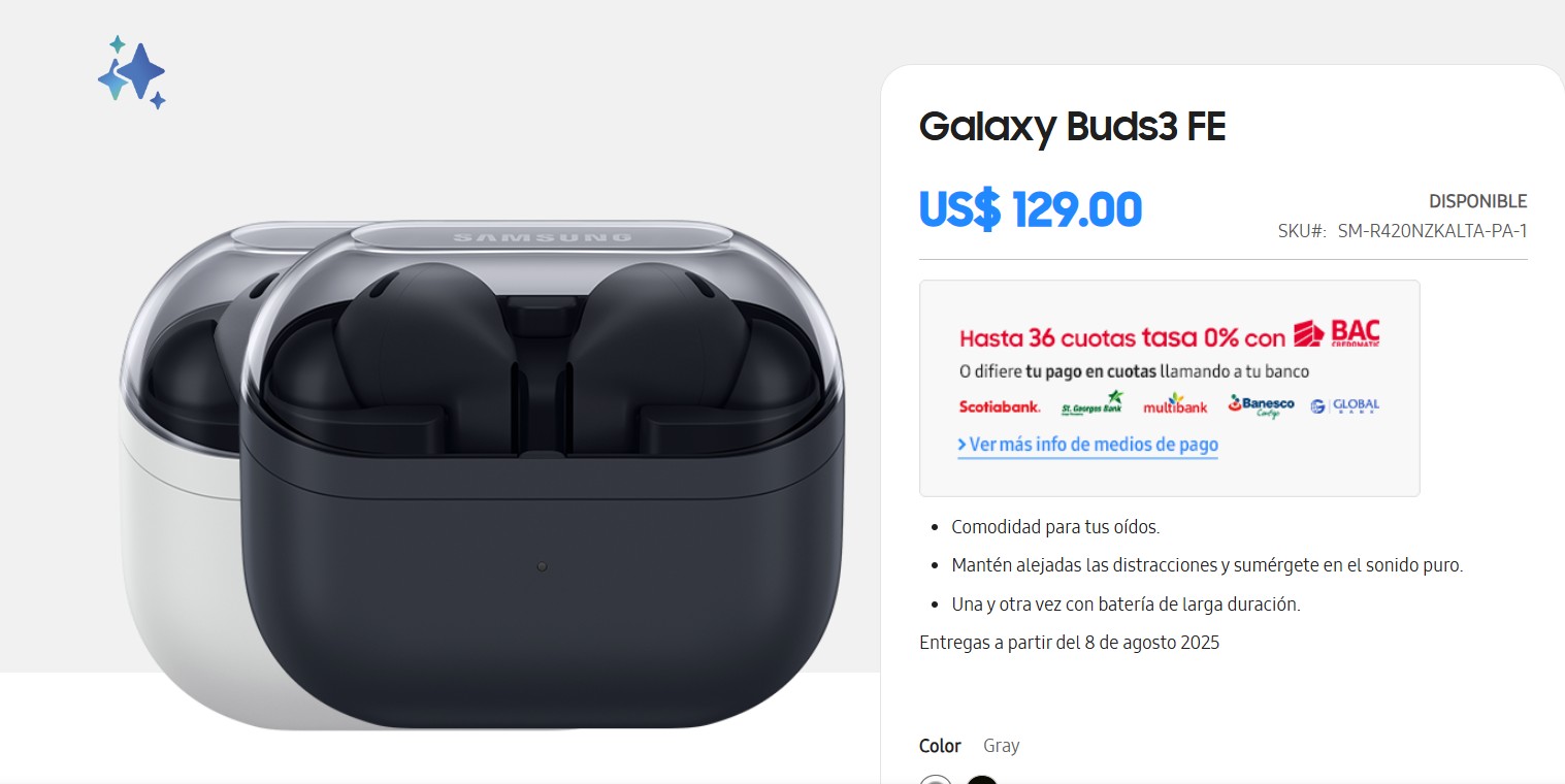 Según la tienda de Panamá, los Buds3 FE tendrán un precio que los sitúa por sobre los de primera generación, y por debajo de los Buds3 Pro.