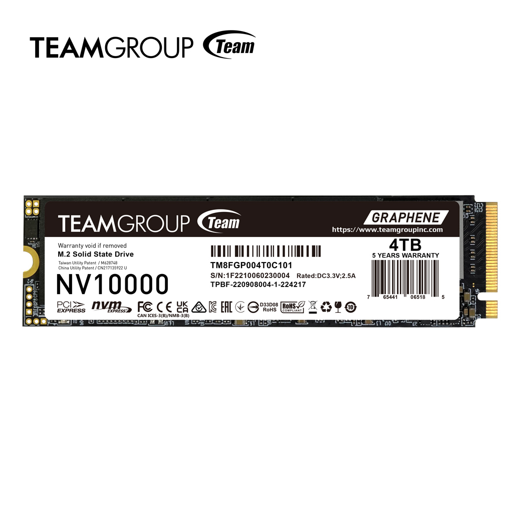 Diseñado para quienes buscan alta capacidad, durabilidad y eficiencia térmica, el NV10000 incorpora la exclusiva etiqueta disipadora de grafeno patentada por TEAMGROUP. La etiqueta reduce el calor de manera eficaz y garantiza un rendimiento estable, incluso bajo cargas de trabajo intensas.