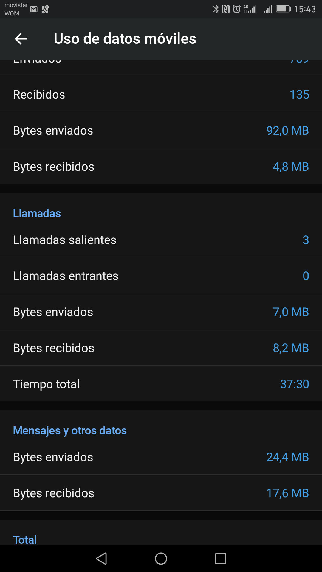 Pero lo mejor viene ahora, ya que el consumo que realizan las llamadas de voz es super poco. Por ejemplo, realicé tres llamadas que dan una duración total de 38 minutos aproximadamente, logrando consumir 16MB aproximado.