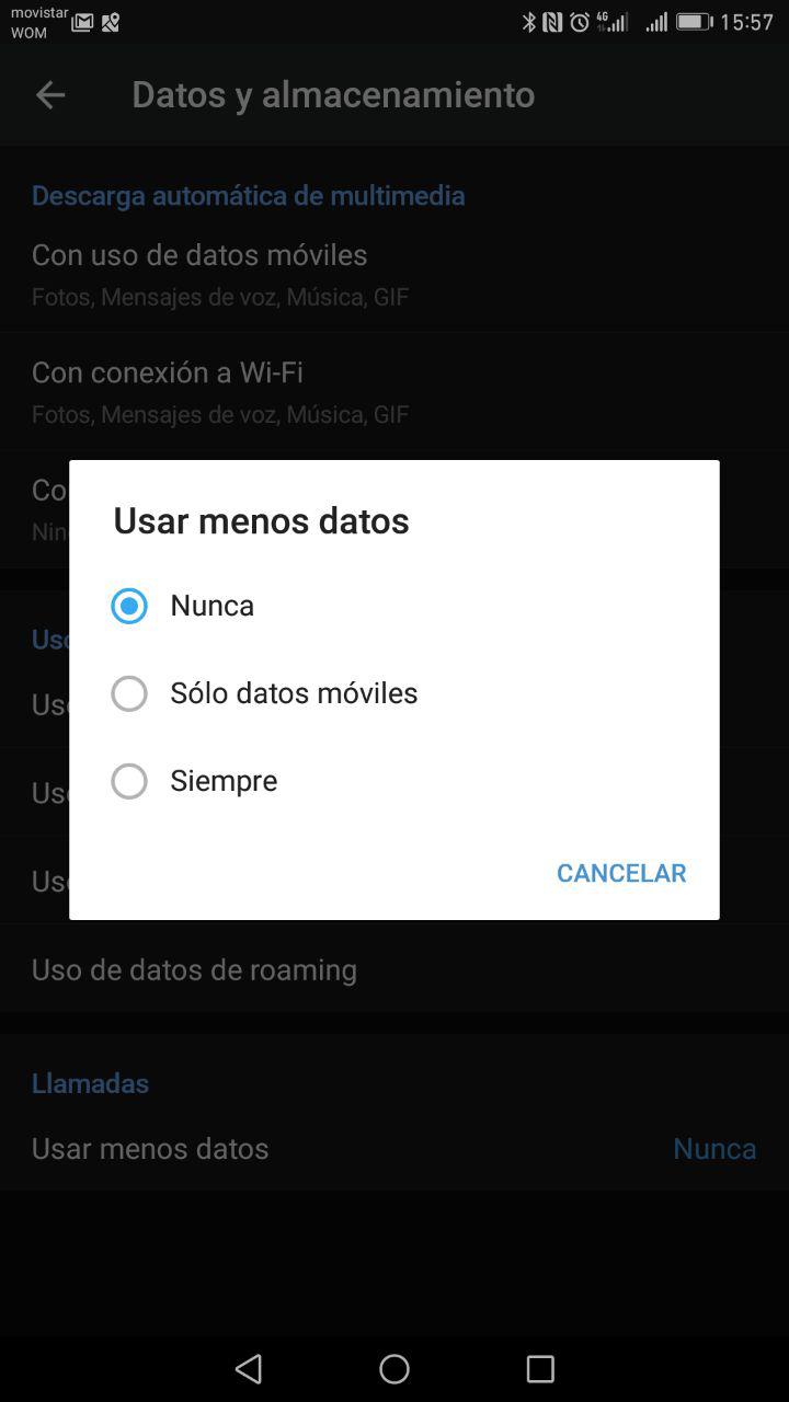 Si aún así te parece que el consumo de datos es elevado, Telegram ofrece una opción para usar menos datos en las llamadas de voz, permitiendo elegir si quieres ahorrar datos en todas las conexiones a internet o solo cuando estas conectado a redes móviles.