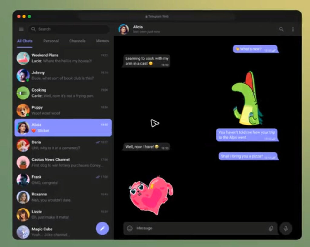 Otra novedad que llega a Telegram tiene relación con la versión web. Ahora el cliente es compatible con stickers animados, modo oscuro, carpetas y más. Una ventaja es que el cliente web es autónomo, y no es como WhatsApp que depende de la conexión con el teléfono.