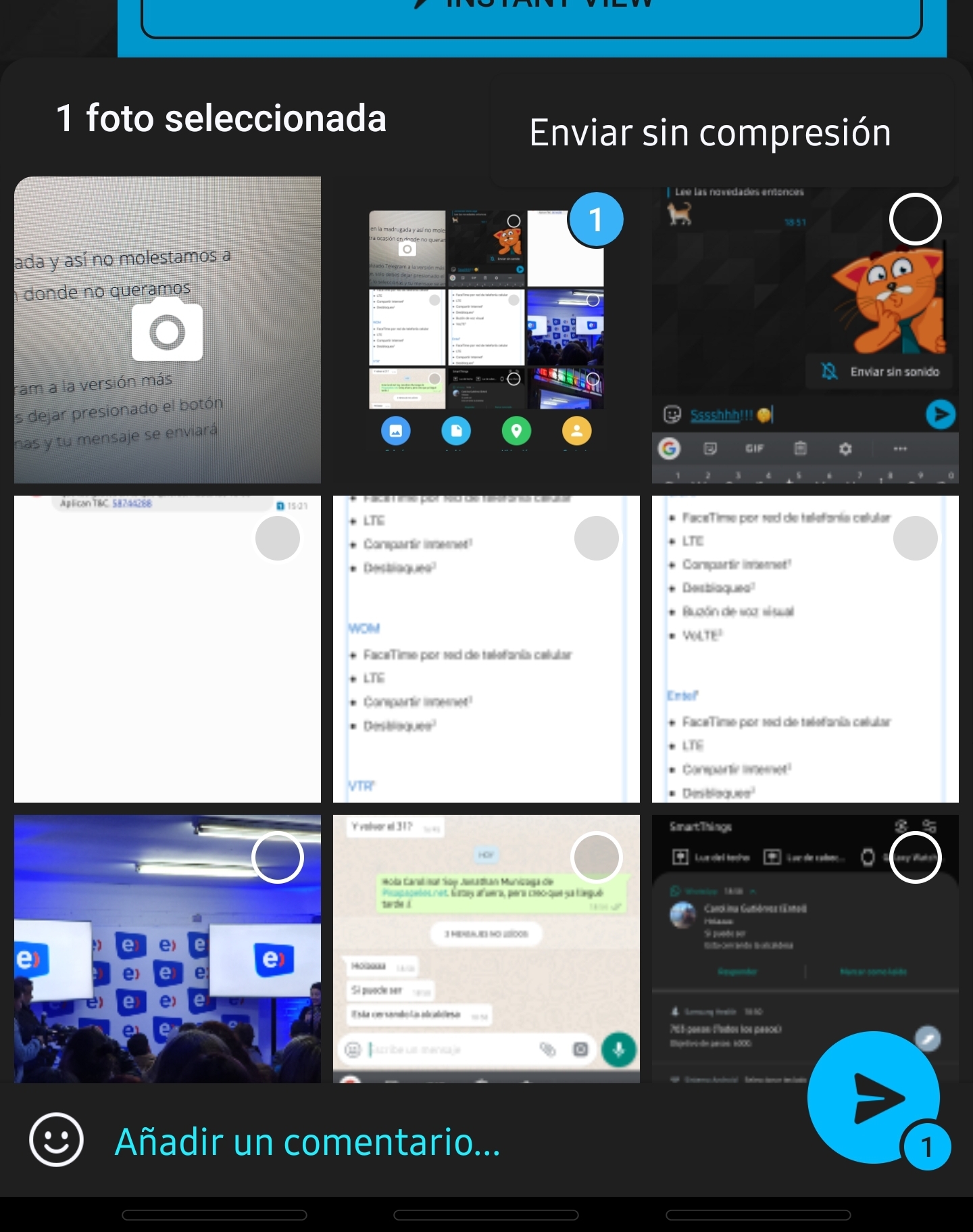También se ha rediseñado aquel menú que vemos al querer enviar imágenes, audio, videos, archivos… etc, ya que ahora te da acceso para seleccionar las imágenes directamente y un acceso directo para enviarlas sin compresión, esto último muchos lo agradecerán. Este último cambio solo es para Android.