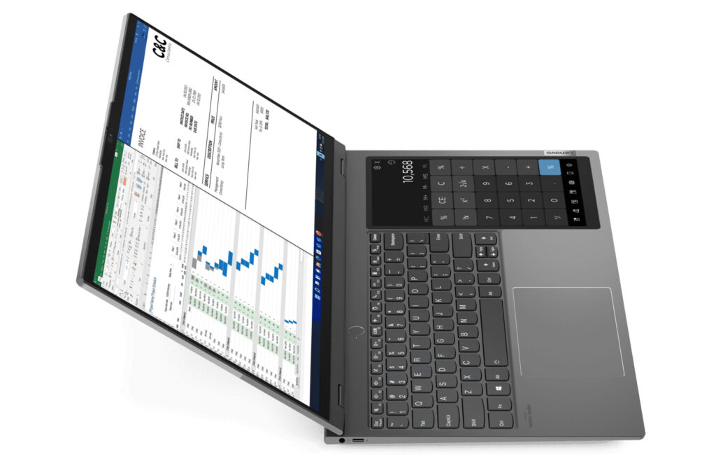 Resulta que su propuesta es la primera notebook del mundo en tener una pantalla principal de 17,3 pulgadas con un formato ultra panorámico — relación de aspecto 21:10 — más una secundaria de 8 pulgadas. Si bien ambas son rectangulares, la primera está colocada en disposición horizontal, mientras que la segunda se ubica abajo a la derecha, aunque en vertical.