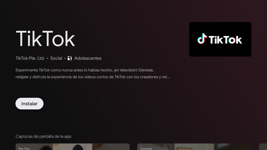 Pero aquella exclusividad ha quedado atrás, ya que la aplicación de TikTok para Android TV ya se encuentra disponible en Chile de manera oficial, tal cual como lo demuestra la siguiente captura de pantalla: