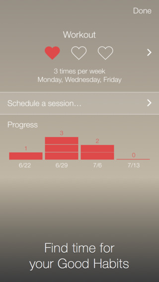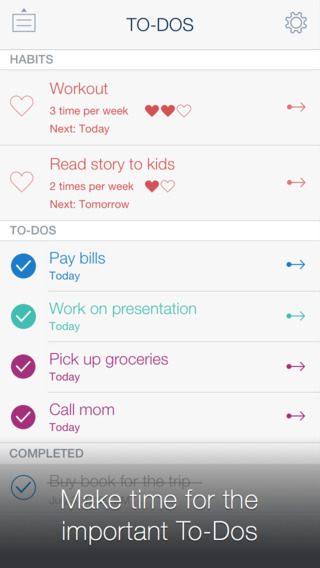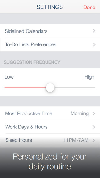Otra característica de esta aplicación es la creación de hábitos, programando una repetición de tareas, como pasear a tu mascota o hacer ejercicio, y luego indicarle a Timeful la frecuencia con la que quieres hacer dicha actividad. Además te entrega distintas recomendaciones de programación.