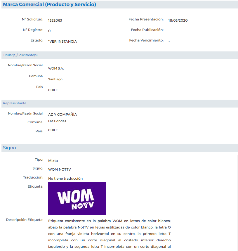 Ahí pudo ver al mismísimo WOM registrando las marcas que viste más arriba, demostrando que el operador estaría aparentemente muy decidido en ofrecer este nuevo servicio.
