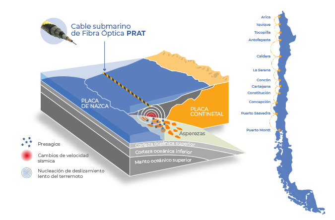 Este método aprovecha las impurezas naturales de las fibras para detectar vibraciones en tiempo real, convirtiendo cada tramo en miles de sensores. El objetivo es mejorar la detección temprana de sismos y tsunamis, considerando que la mayoría de los grandes terremotos en Chile tienen su epicentro en el mar.