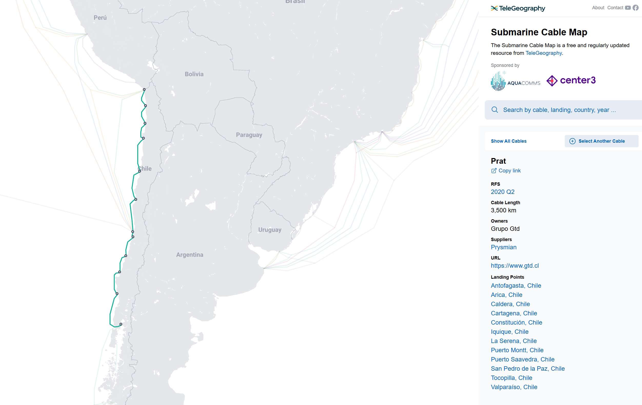 «El Cable Prat complementa a otras redes nacionales, como por ejemplo con el sistema de cables submarinos FOS, que también es propiedad de Gtd, que conecta Puerto Montt, con Chiloé, Puerto Aysén y Coyhaique, con el cable submarino FOA que llega a Punta Arenas y Puerto Williams».
