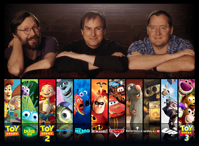 Muchos desconocen la relación que tiene Jobs con Pixar. Pues bien, él fue su fundador, y gracias a él conocemos películas como Toy Story, Bichos, Monsters Inc, etc.