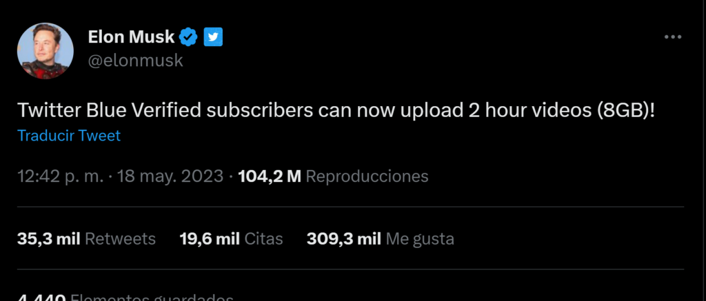 Tal y como lo ha anunciado el propio Elon Musk en su cuenta oficial de la red social, la función ya está disponible. Eso sí, los vídeos tienen que ser a resolución 1080p y tener un tamaño de archivo de 8 GB o inferior.