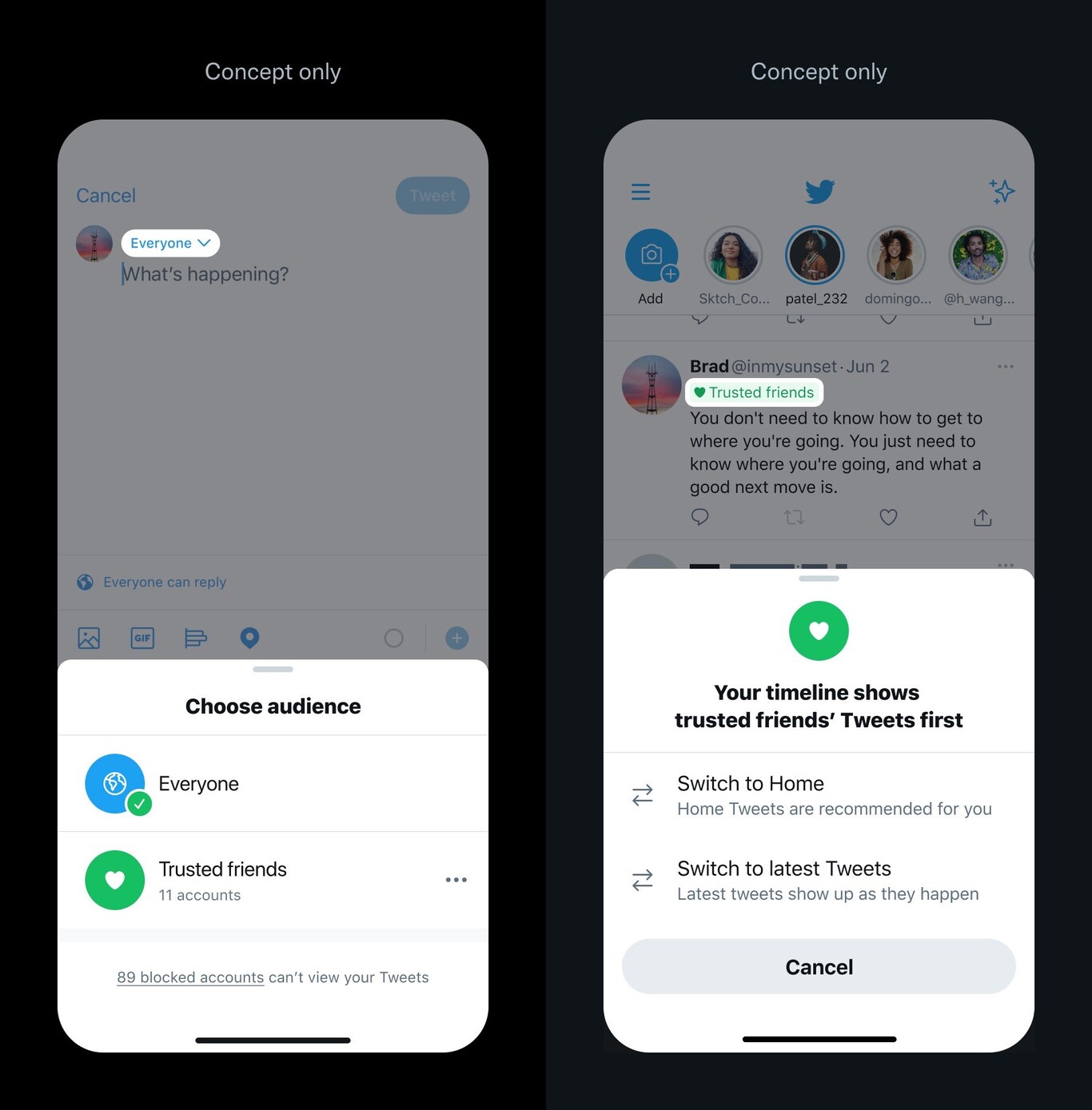 Como te mencioné, son tres ideas: “Trusted friends”, “Reply preferences”, y “Facets”. Cada una es una función distinta y pensada para diferentes usos que podríamos darle en la red social. Sin embargo, son solo conceptos creados por Twitter. Vamos a conocerlos.