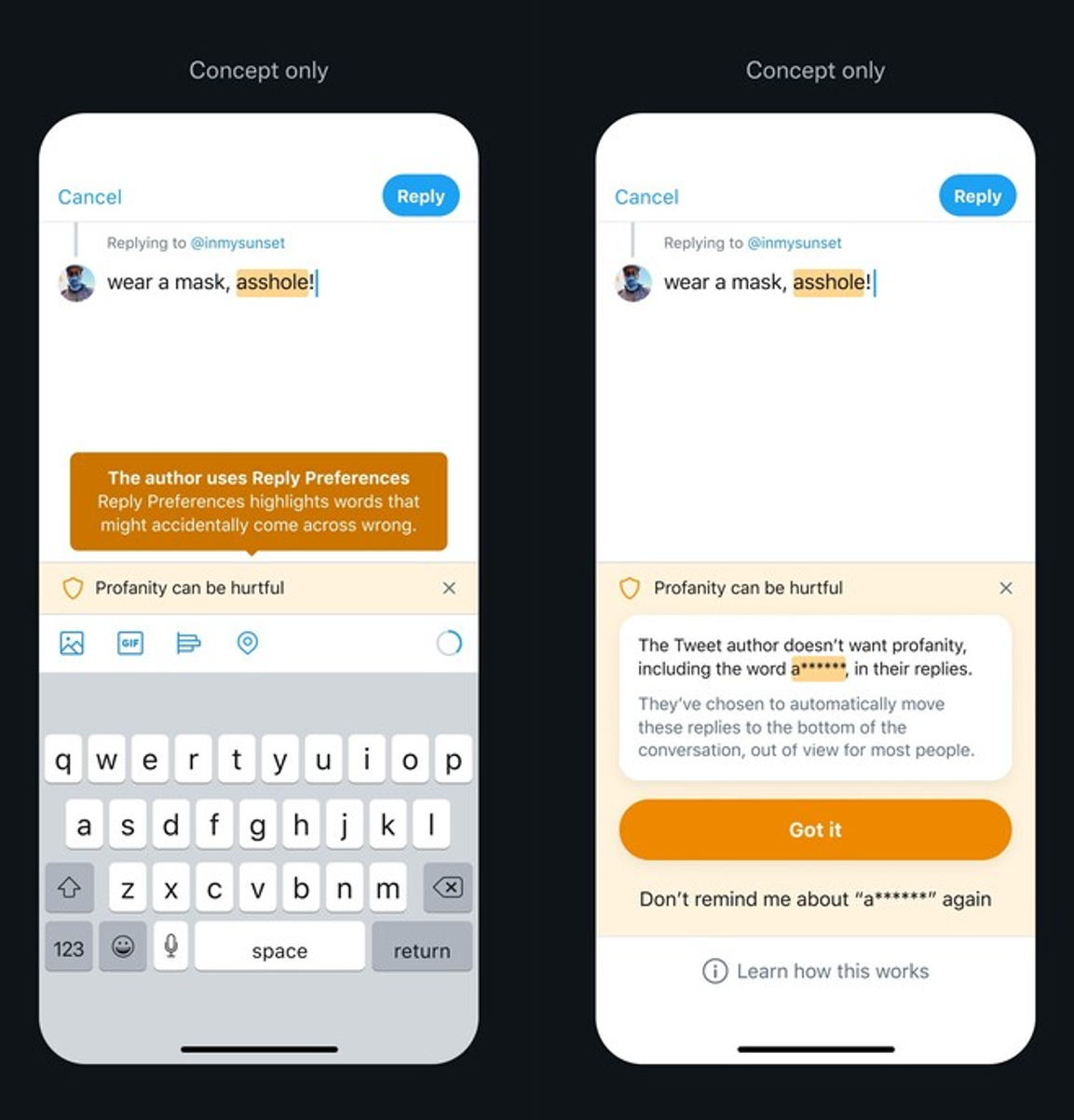 Esta característica nos permitirá liberarnos de la mala onda de algunas cuentas. Por ejemplo, yo agrego a una lista la palabra “envidioso”. Entonces, cuando una persona vaya a responderme usando la palabra “envidioso”, automáticamente Twitter le advertirá que yo no estoy aceptando dicha palabra.