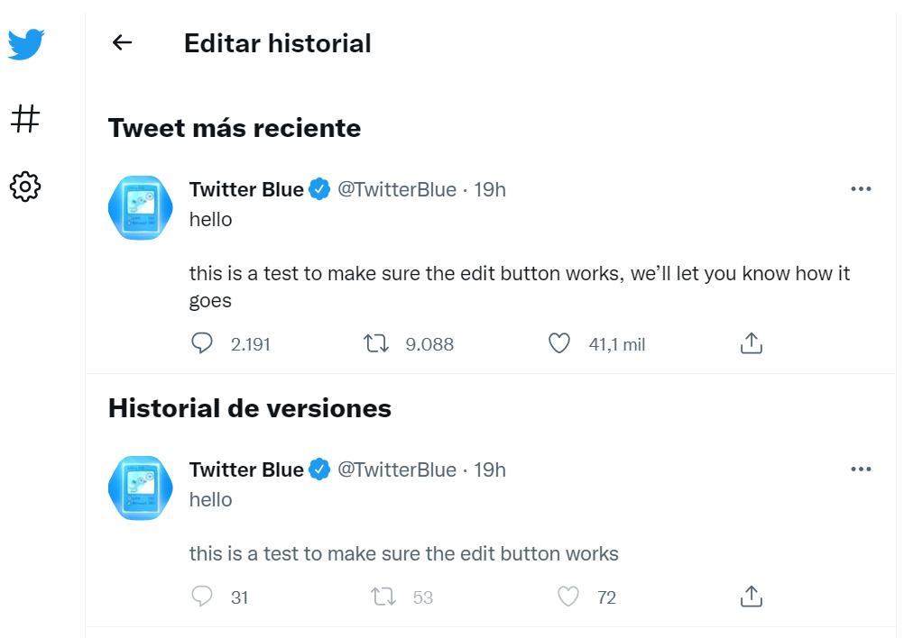 La cuenta oficial de Twitter Blue escribió su primer tuit editado. Es el siguiente: