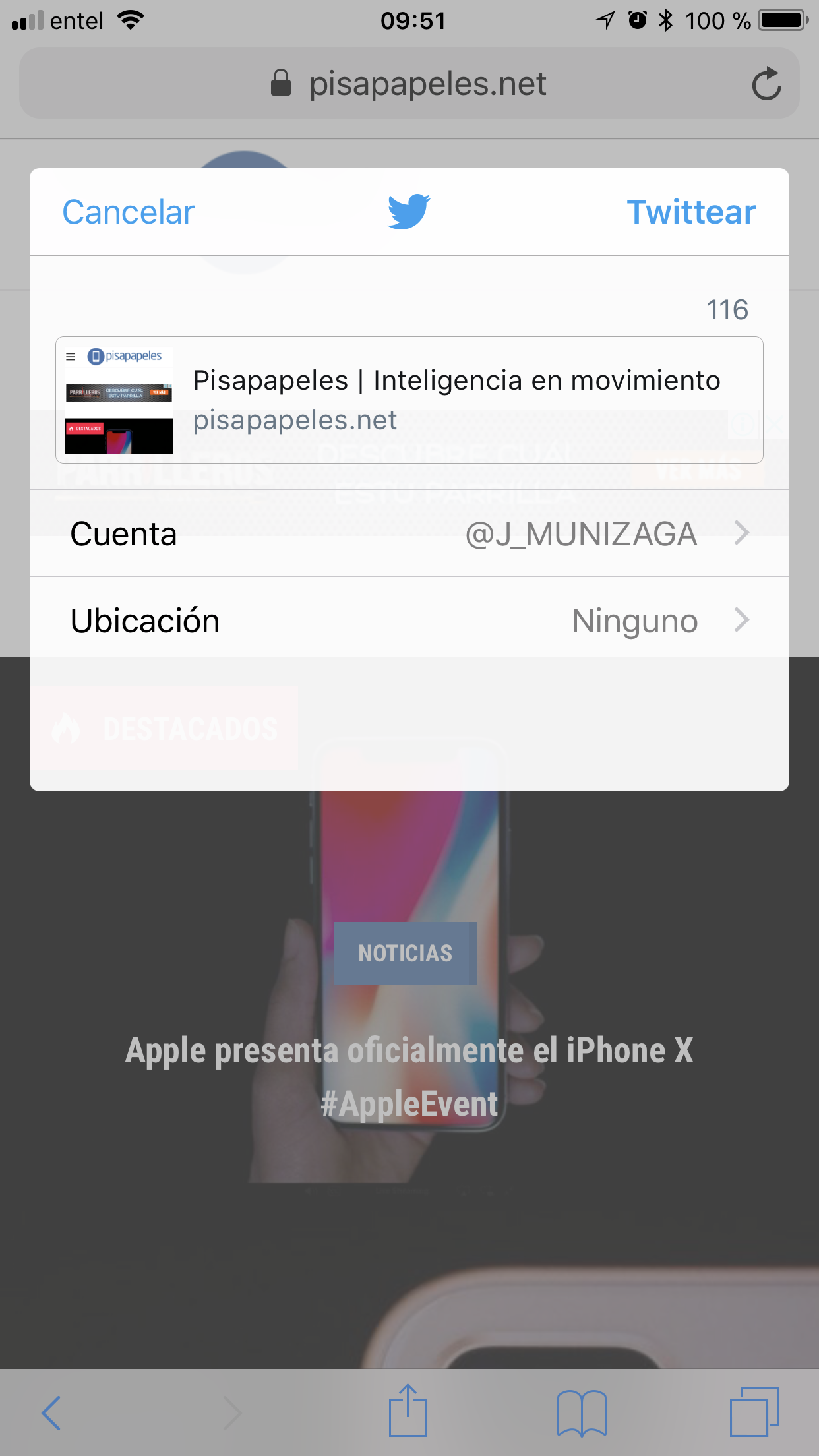 Ahora al momento de seleccionar a Twitter desde el menú Compartir en iOS 11, veremos que es la aplicación oficial la que hace el trabajo ahora y no el sistema operativo como sucedía en iOS 10. Por lo tanto, si actualizas a iOS 11, procura actualizar la aplicación de Twitter desde la App Store para que no tengas problemas al momento de querer compartir algo en la red social.