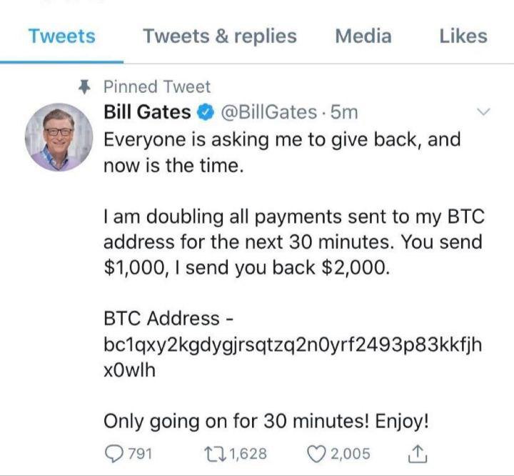 En Twitter se está produciendo un hackeo en manada, por decirlo de alguna forma. Diversidad de cuentas de personalidad y/u organizaciones reconocidas a nivel mundial publicaron mensajes incitando a una estafa en Bitcoin (BTC).