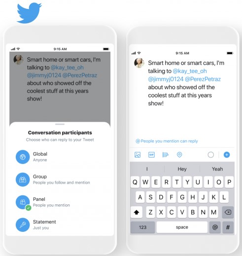 - Panel: Personas que mencionas en el tweet podrán responder.