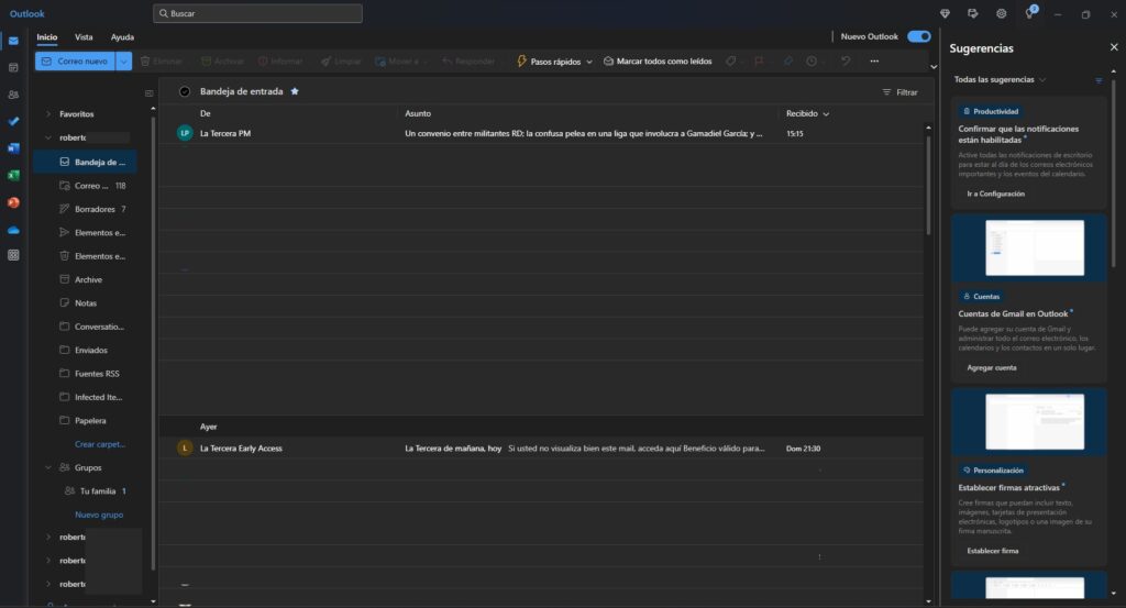 Si tienes disponible la versión preliminar, para activarla sólo debes seleccionar el interruptor que está arriba a la derecha en la aplicación de Correo. Igualmente, podrás volver a la versión anterior cuando quieras.
