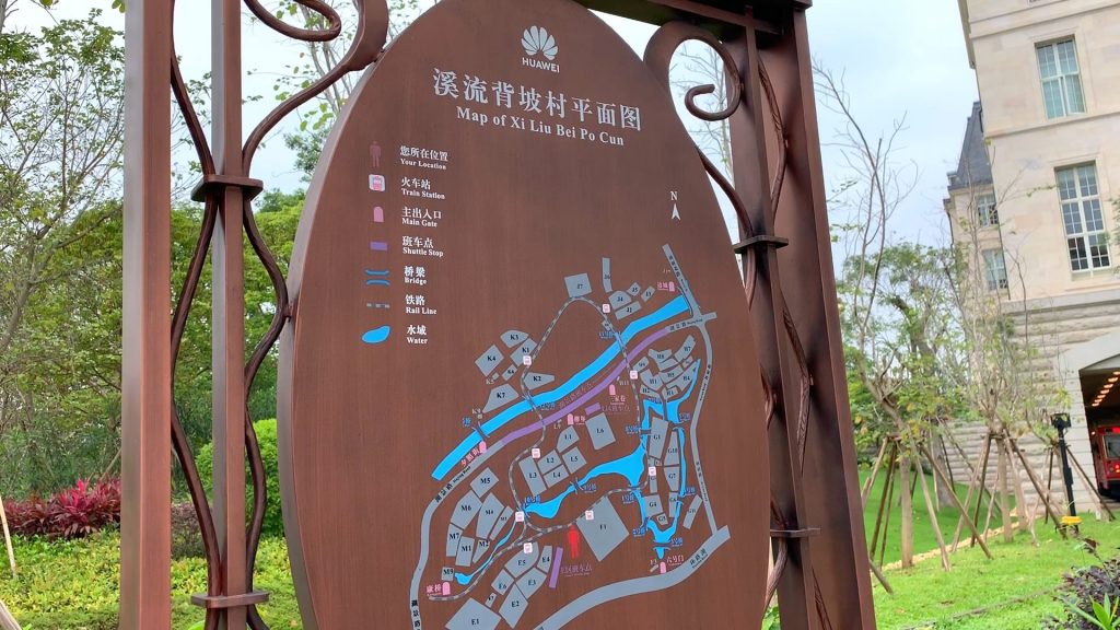 No obstante, dejamos la ciudad de Shenzhen y nos vamos hasta Dongguang, lugar que alberga alcampus de Huawei llamado Xi Liu Bei Po Cun. El nombre significa Ladera de sotavento con arroyos, pero es conocido como Ox-Horn.