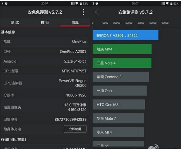 Como se puede apreciar en la imagen, este supuesto OnePlus mini se sitúa por sobre terminales como el Samsung Galaxy Note 4, el HTC One M8, Meizu Mx4, Asus Zenfone 2 y el Xiaomi Mi4.