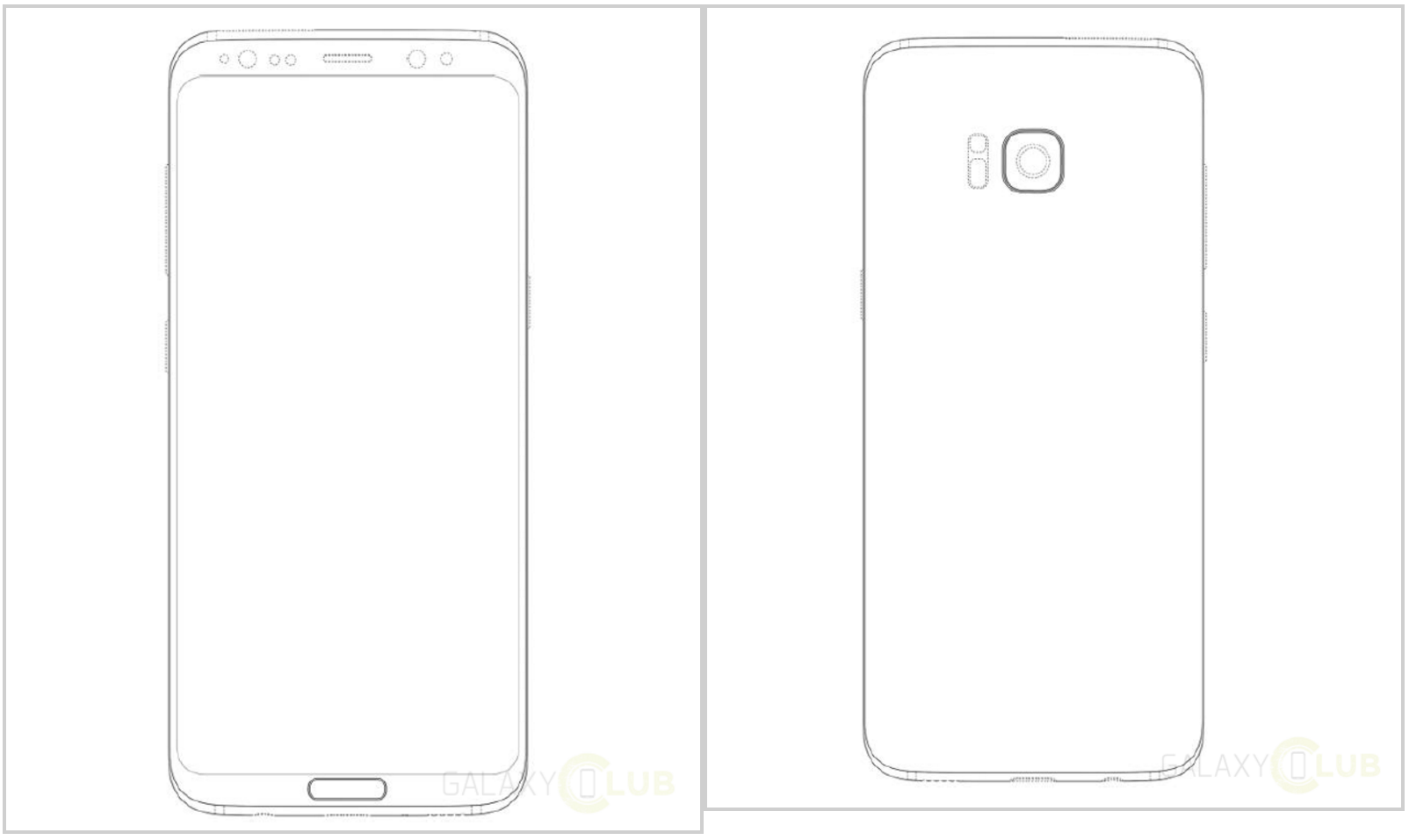 Como podrás apreciar, en la parte inferior del diseño notamos un pequeño botón de inicio físico, el que aparentemente también actuaría como lector de huellas dactilares, repitiendo lo que vimos en el Galaxy S7, ya que en la parte trasera no apreciamos el incómodo lector de huellas que vemos en la actualidad en el Galaxy S8.