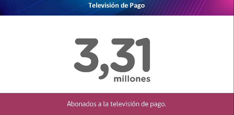 Según la subsecretaría de Telecomunicaciones (Subtel), el 57,2% de los hogares cuenta con televisión de pago, bajando un 0,3% respecto al año pasado. El total de abonados en este segmento es de 3,31 millones de abonados.