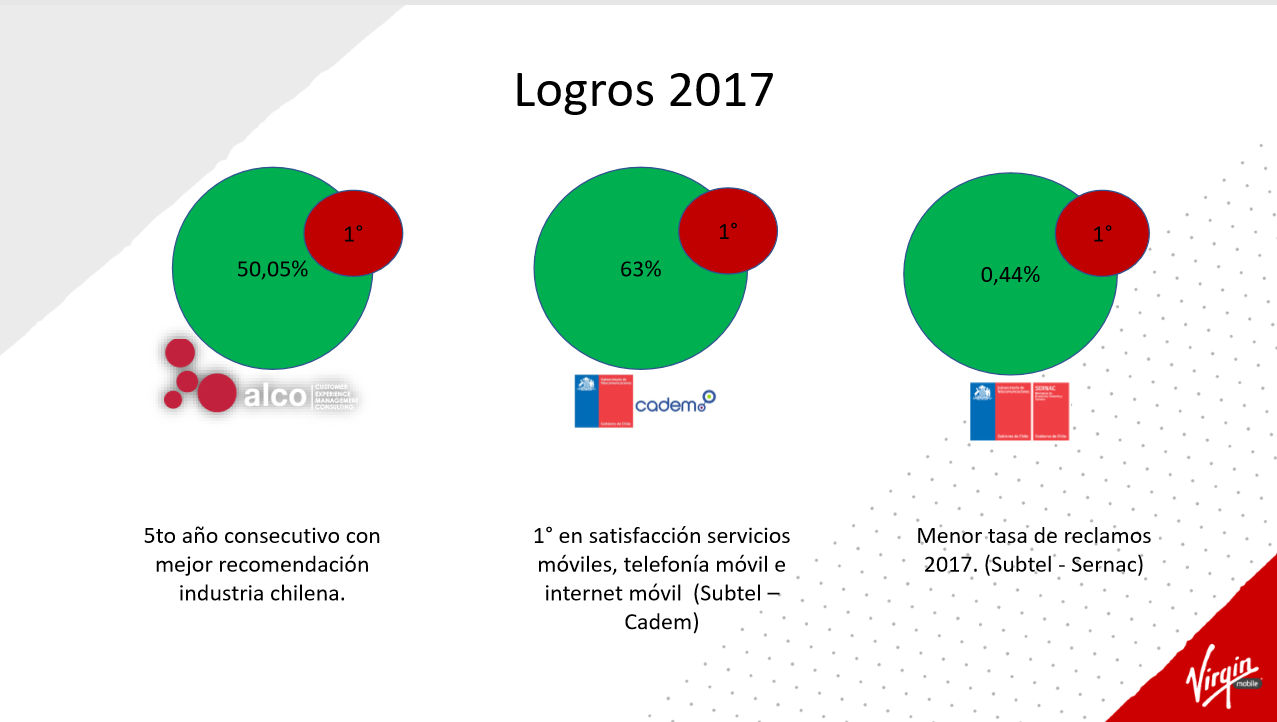 «Estos logros se deben a que los valores de la marca — calidad, complicidad, autonomía y transparencia — son el reflejo del buen ambiente interno, donde el modelo de trabajo está basado en la confianza y en la diversidad de pensamientos y personalidades, lo que constituye el motor que hace surgir las ideas innovadoras y la buena atención a los usuarios«, explicó Patricio Nuñez, gerente general de Virgin Mobile.