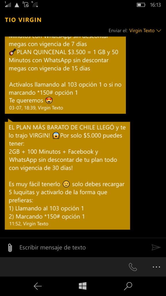 Veremos cuánto se demora en responder la competencia de Virgin Mobile ante el plan de $5.000 mensuales que dicen ser el más barato de Chile, de hecho el mismo operador lo dice a través de un SMS: