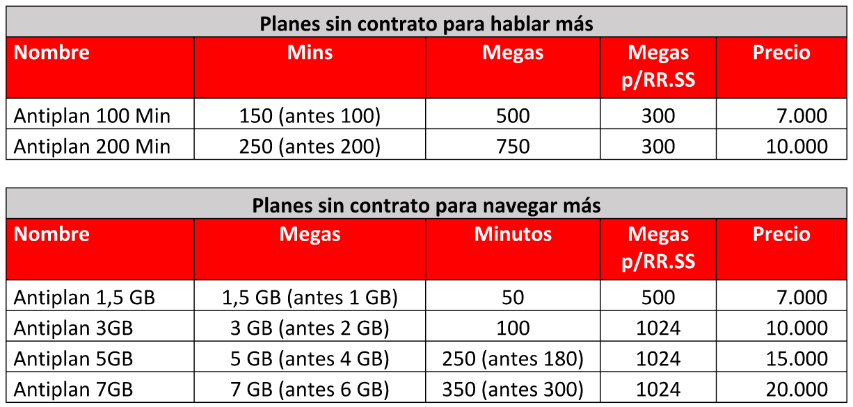 Tal como se puede ver en la imagen, encontramos aumentos de hasta un 50% en voz y datos para algunos de los antiplanes. Según Juan Antonio Etcheverry, Gerente General de Virgin Mobile Chile: