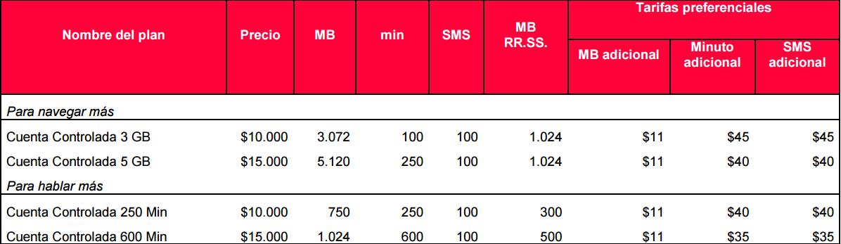 Ante esta suscripción existe una restricción para quienes se inscriban a un plan prepago en modalidad Cuenta Controlada, aquellos clientes no podrán activar o pedir prestadas bolsas o Antiplanes.