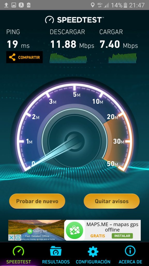 Nos impresiona también la pobre velocidad de este 4G+ que ni siquiera se acerca a los pobres resultados que da el 4G+ de Entel que no sobrepasa los 30Mbps. Sin embargo, obviamente es aceptable porque son simplemente pruebas.