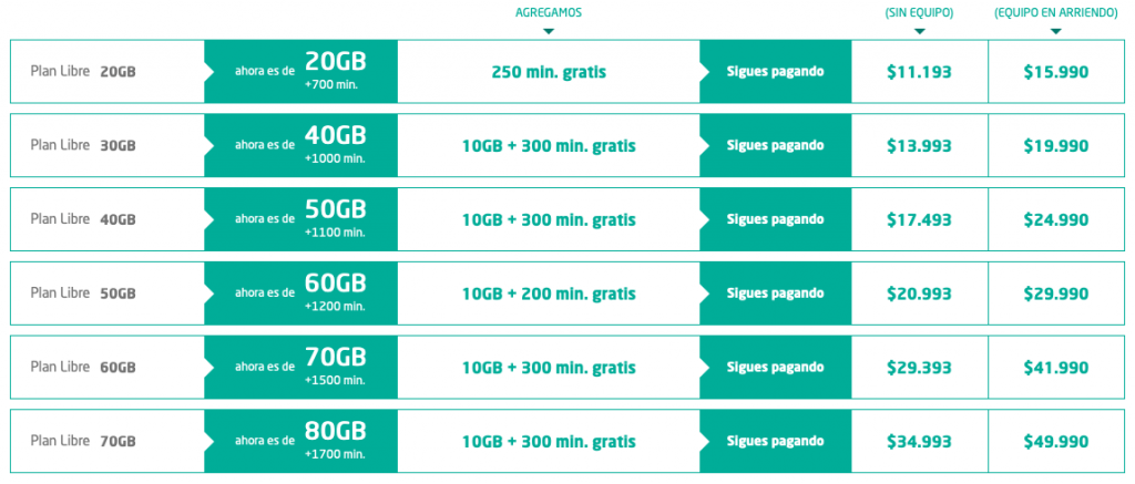 En esta ocasión tenemos mejoras en sus tres categorías de planes: Libres, Controlados y Plus. Cada uno de ellos cuenta con más minutos gratis y también con más datos móviles.