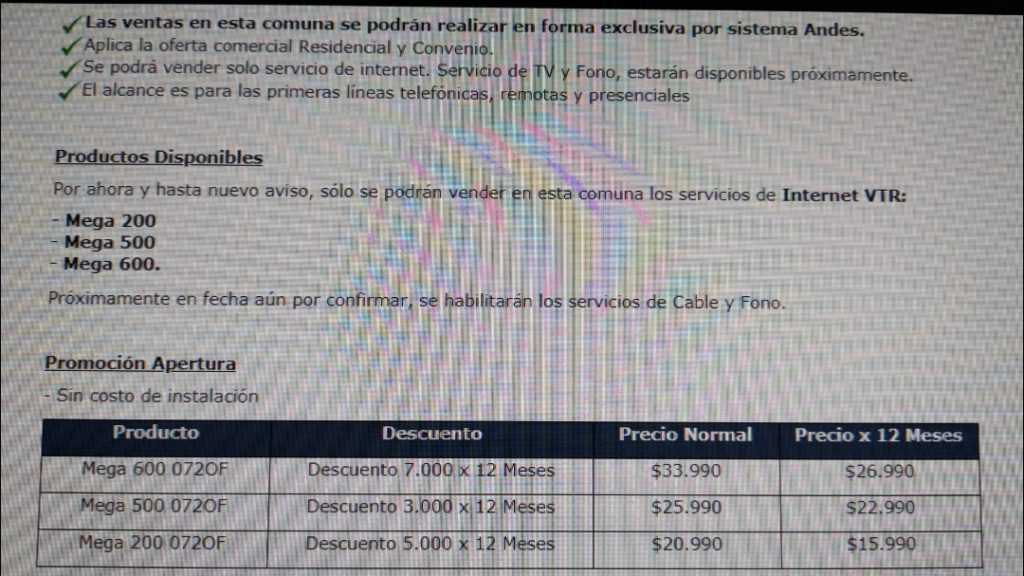 Como podrás ver estimado lector, VTR por el momento solo estaría ofreciendo el servicio de internet a través de su nueva fibra óptica, mientras que próximamente se espera que ofrezca servicio de televisión y telefonía fija.