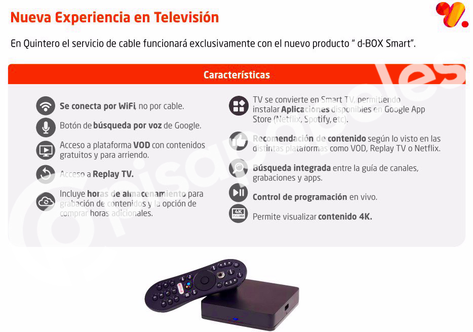 Por ahora no sabemos si aquella imagen es real o no, ya que el operador no ha confirmado absolutamente nada. Sin embargo, aparentemente se ofrecería a los clientes del servicio de fibra óptica en Quintero.