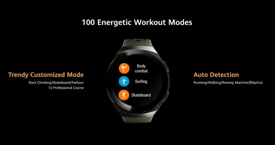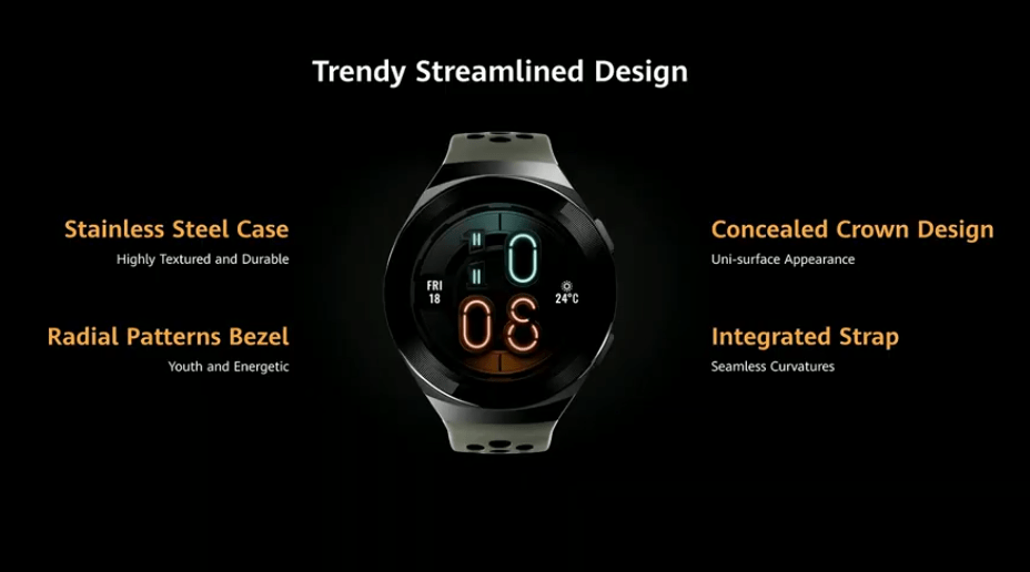 Con un diseño más agresivo y siendo ideal para el deporte, el Huawei Watch GT 2e cuenta con materiales de acero inoxidable para hacerlo más resistente y llegará en correas de colores negro, rojo, verde menta y blanco.