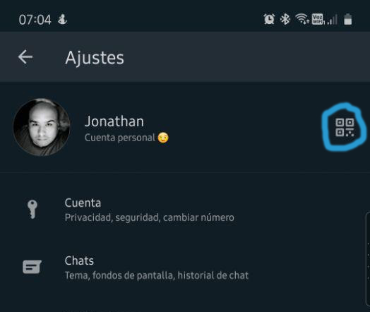 Si ya cuentas con la versión beta de WhatsApp en Android, solo debes ir a Ajustes, y justo al lado derecho de tu perfil notarás el ícono de un código QR, el cual debes presionarlo y accederás a tu código QR personal para que se lo muestres a la otra persona o simplemente lo compartas.