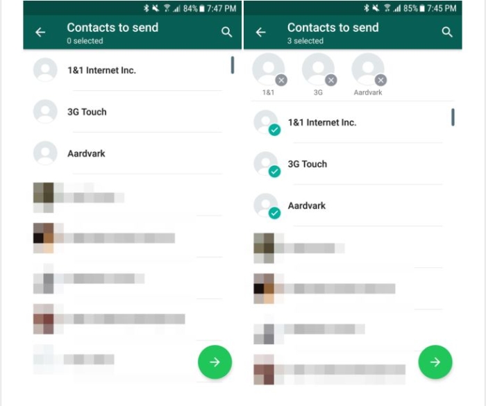 Según se consigna en AndroidPolice, la aplicación de mensajería más usada en estos lados ha añadido la posibilidad de enviar varios números telefónicos de nuestra agenda a la vez, haciendo mucho más fácil para el usuario compartir los mismos, pues ya no tenemos que estar compartiéndolos uno por uno, proceso que se volvía tedioso.